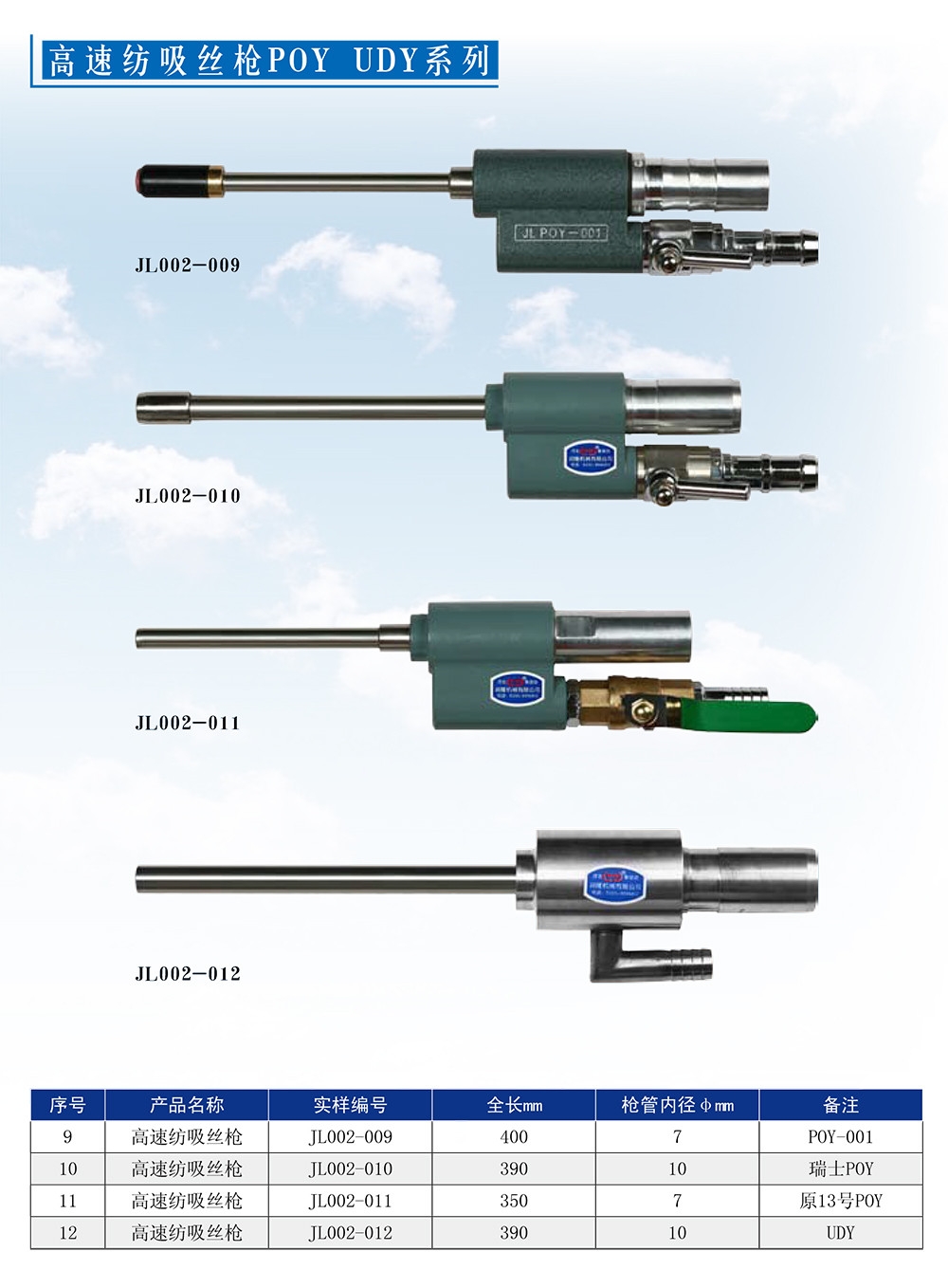 主營各種系列吸絲槍和各種規(guī)格快速插座、升絲拉桿為主。吸絲槍主要包括高速紡FDY、 POY、短絲槍、工業(yè)絲槍,包括紡DTY、加彈機系列。來圖來樣生產(chǎn)。